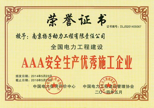全國(guó)電力工程建設(shè)AAA級(jí)安全..