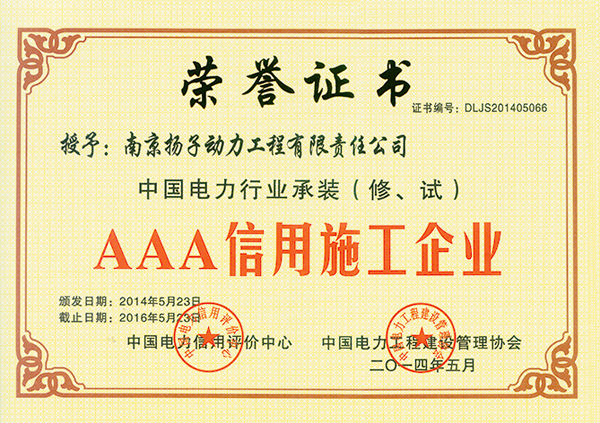 AAA級(jí)優(yōu)秀施工企業(yè)