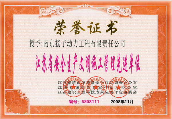 江蘇省安全生產(chǎn)文明施工優(yōu)秀單..
